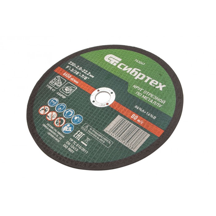Круг отрезной по металлу, 230 х 2,0 х 22,2 мм Сибртех (743247)
