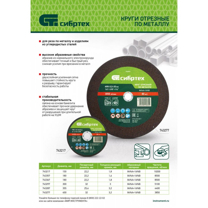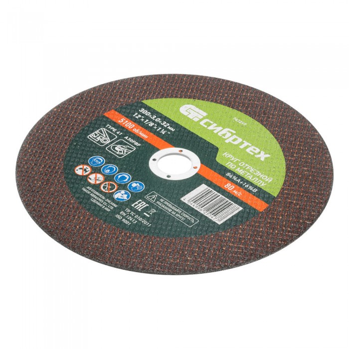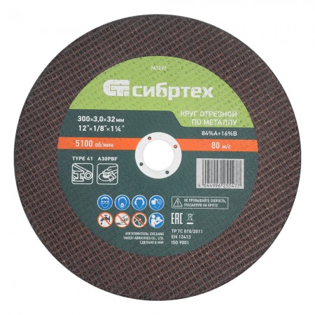 Круг отрезной по металлу, 300 х 3,0 х 32 мм, 84%A+16%B// Сибртех (743297)