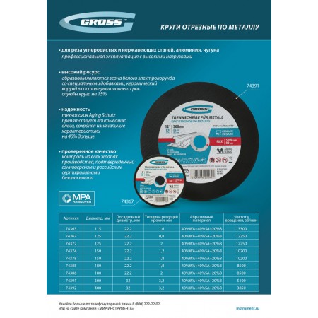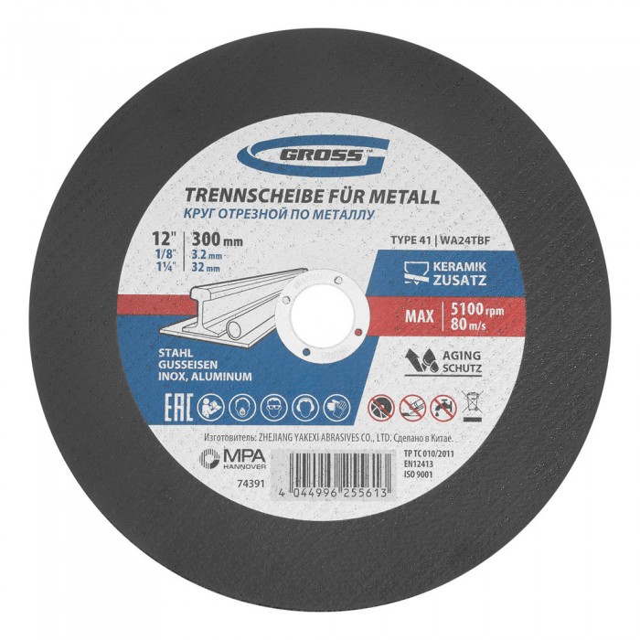 Круг отрезной по металлу, 300 x 3,2 x 32 мм, WA24TBF// Gross (74391)