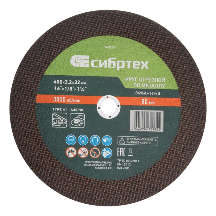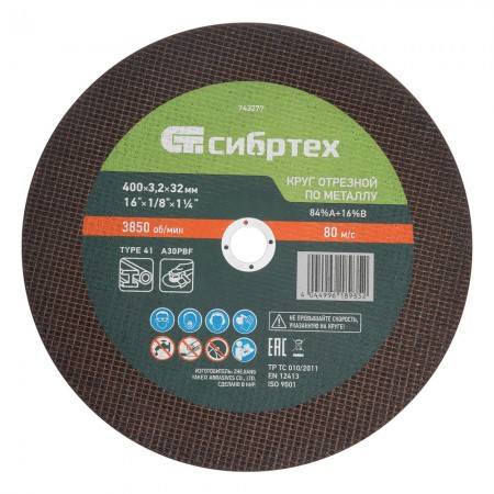 Круг отрезной по металлу, 400 х 3,2 х 32 мм, 84%A+16%B// Сибртех (743277)