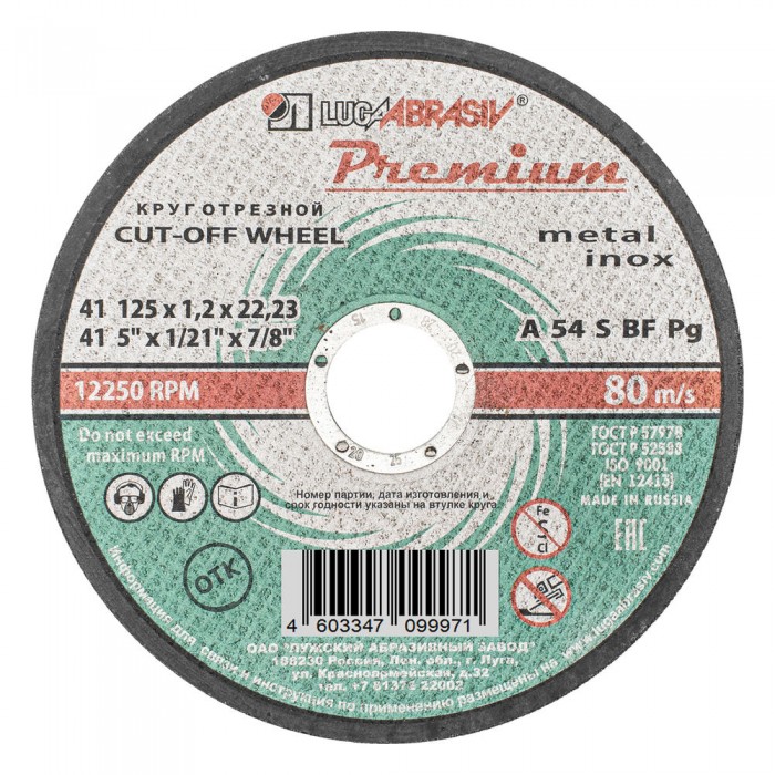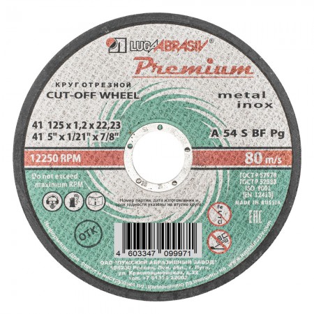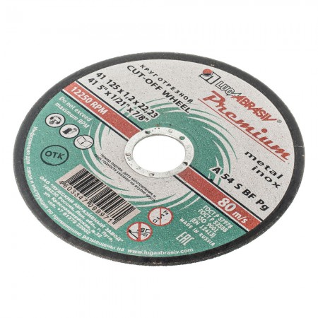 Круг отрезной по металлу и нержавеющей стали, 125 х 1.2 х 22 мм, Премиум "Луга" (73713)