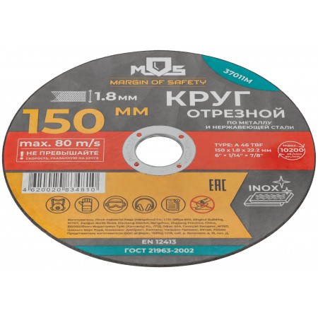 Круг отрезной по металлу MOS, посадочный диаметр 22,2 мм, 150х1,8 мм (37011М)