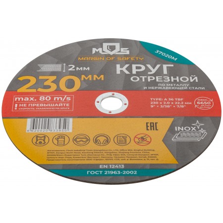 Круг отрезной по металлу MOS, посадочный диаметр 22,2 мм, 230х2,0 мм (37020М)