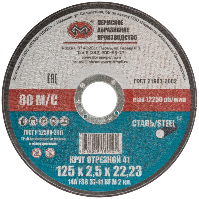 Круг отрезной по металлу "Пермь", посадочный диаметр 22,2 мм, 150х2,5 мм (37079)
