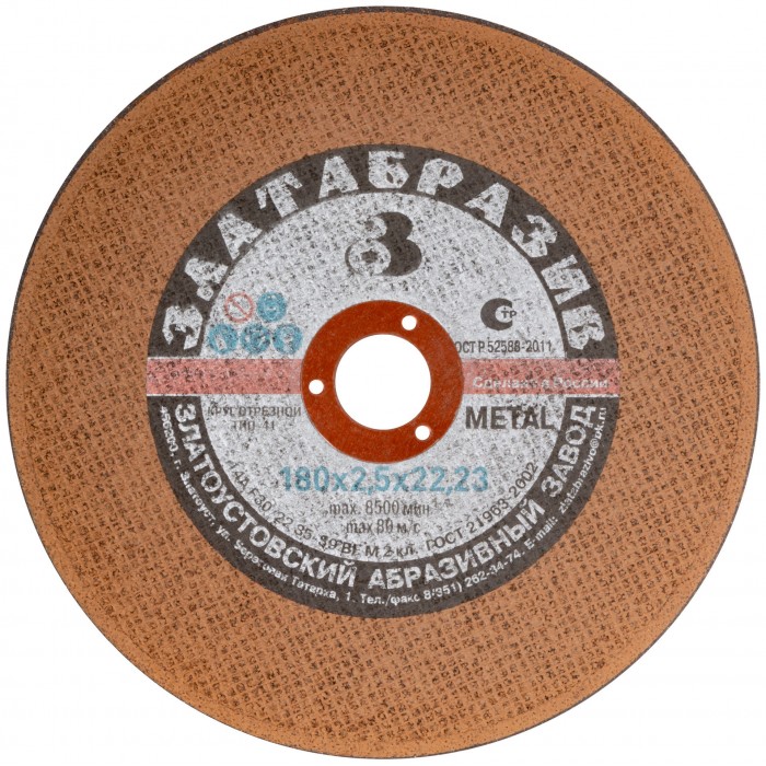 Круг отрезной по металлу "Златоуст", посадочный диаметр 22,2 мм, 180х2,5 мм (37033)