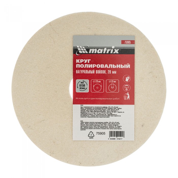 Круг полировальный из натурального войлока, 125 х 20 х 32 мм Matrix (75905)