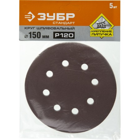 Круг шлифовальный Стандарт 150 мм, 6 отверстий, Р120, 5 шт ЗУБР 35350-150-120