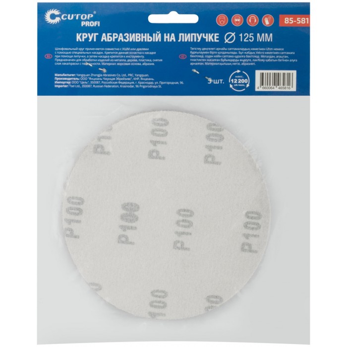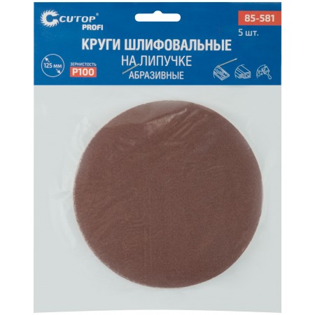 Круги абразивные шлифовальные на ворсовой основе под "липучку" ( Р100, 125 мм, 5шт.), Cutop Profi (85-581)