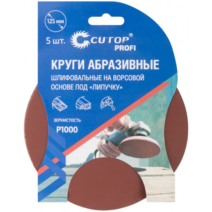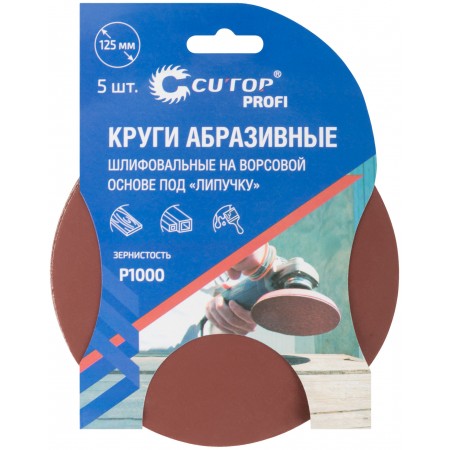 Круги абразивные шлифовальные на ворсовой основе под "липучку" ( Р1000, 125 мм, 5шт.), Cutop Profi (85-614)