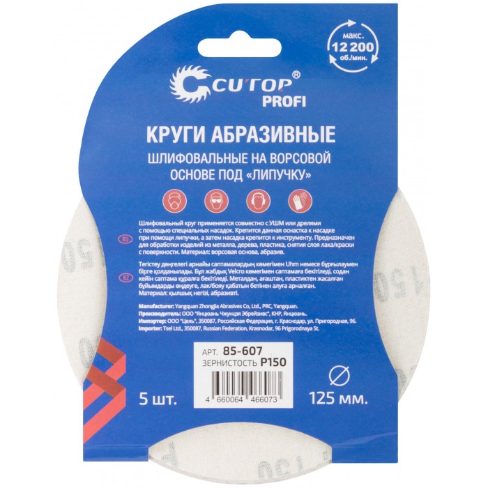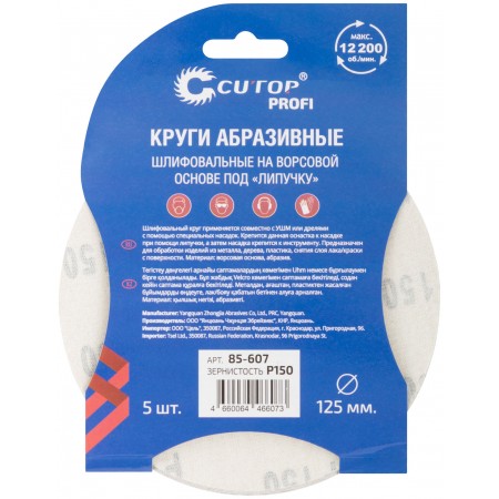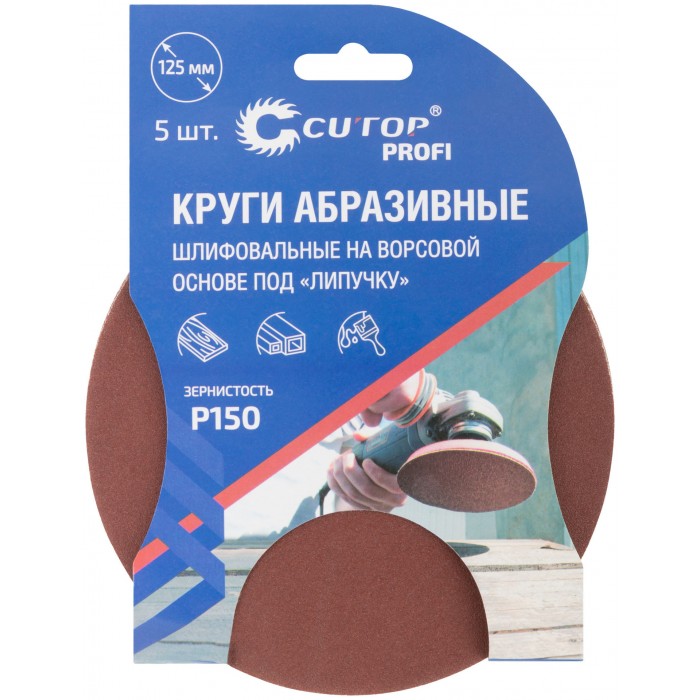 Круги абразивные шлифовальные на ворсовой основе под "липучку" ( Р150, 125 мм, 5шт.), Cutop Profi (85-607)