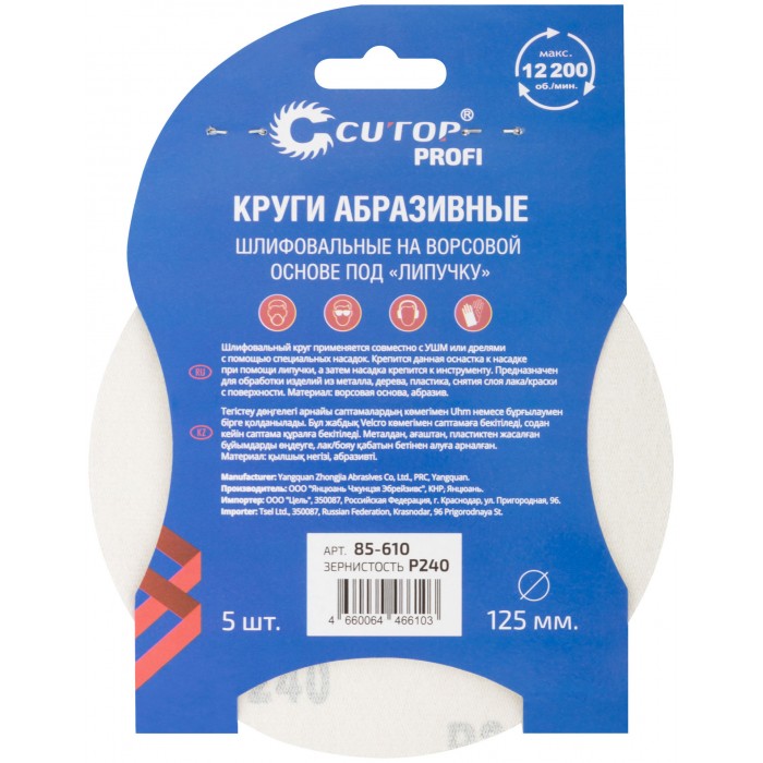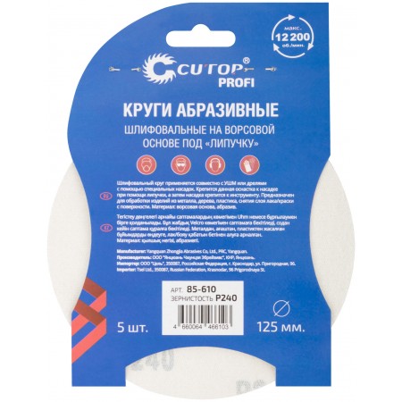 Круги абразивные шлифовальные на ворсовой основе под "липучку" ( Р240, 125 мм, 5шт.), Cutop Profi (85-610)