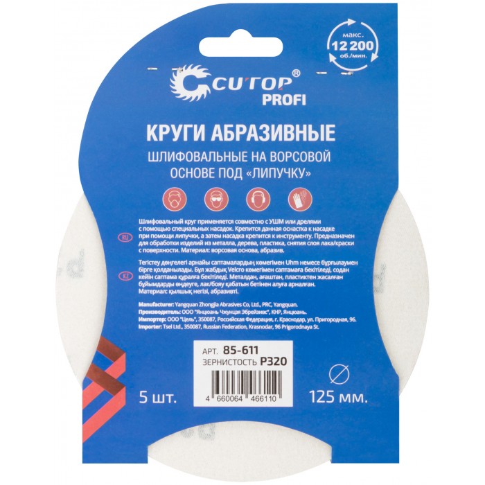 Круги абразивные шлифовальные на ворсовой основе под "липучку" ( Р320, 125 мм, 5шт.), Cutop Profi (85-611)