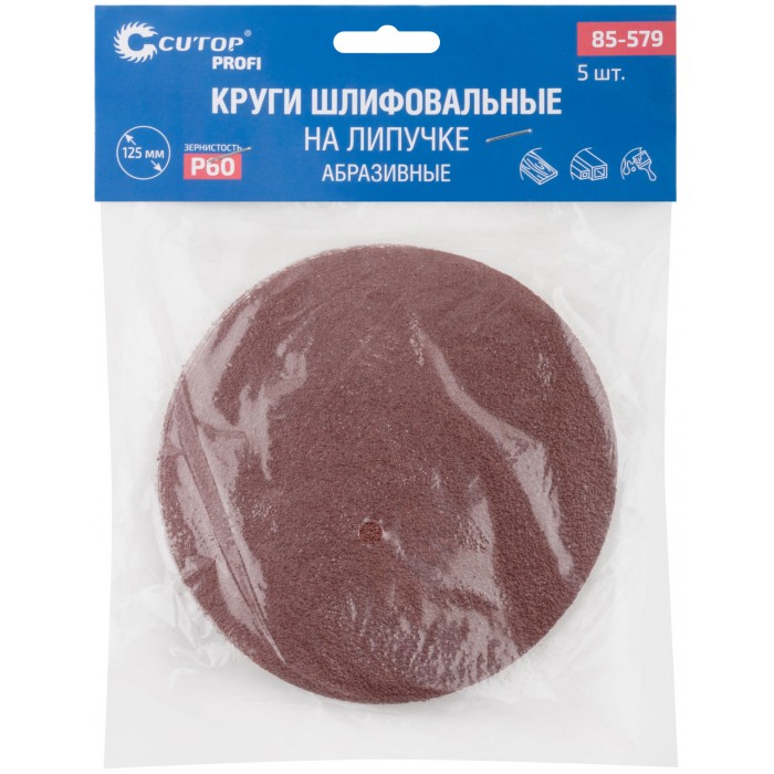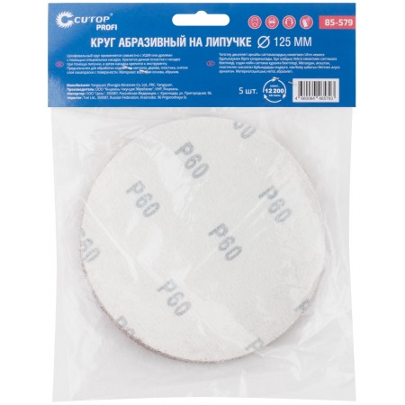 Круги абразивные шлифовальные на ворсовой основе под "липучку" ( Р60, 125 мм, 5шт.), Cutop Profi (85-579)