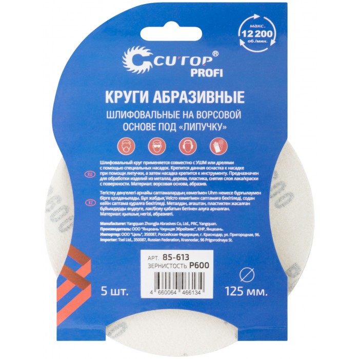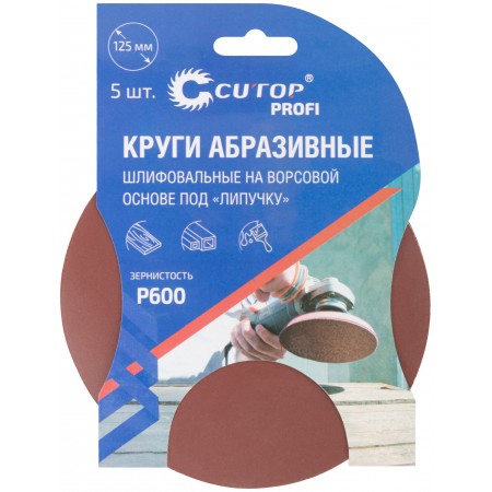 Круги абразивные шлифовальные на ворсовой основе под "липучку" ( Р600, 125 мм, 5шт.), Cutop Profi (85-613)