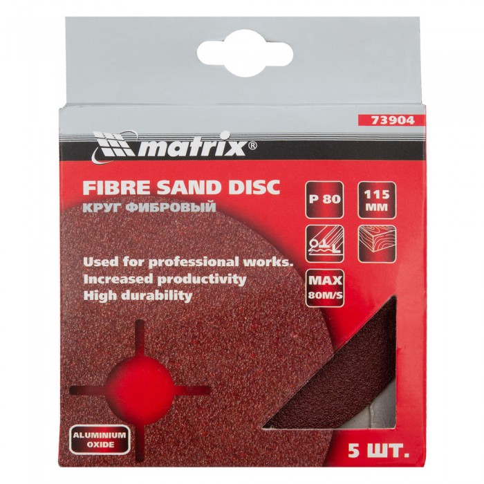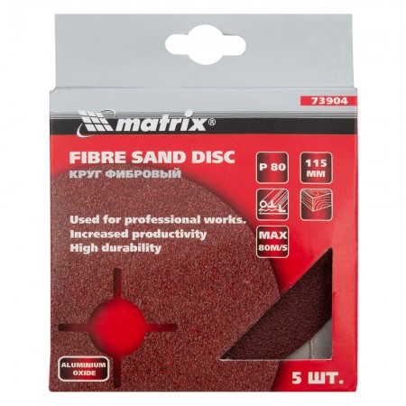 Круги фибровые 5 шт, Р 80, 115 х 22 mm Matrix (73904)
