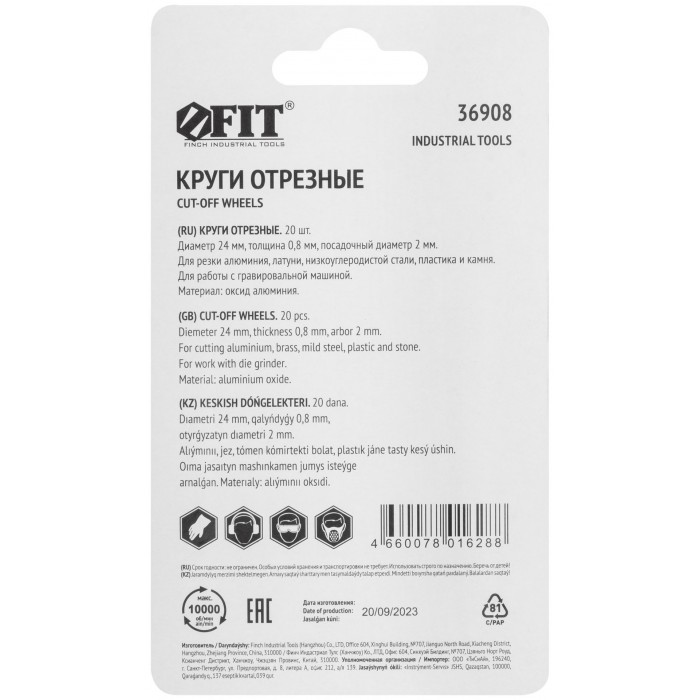 Круги отрезные усиленная нагрузка, набор 20 шт. (36908)