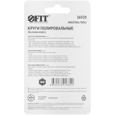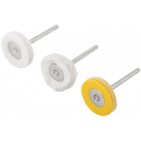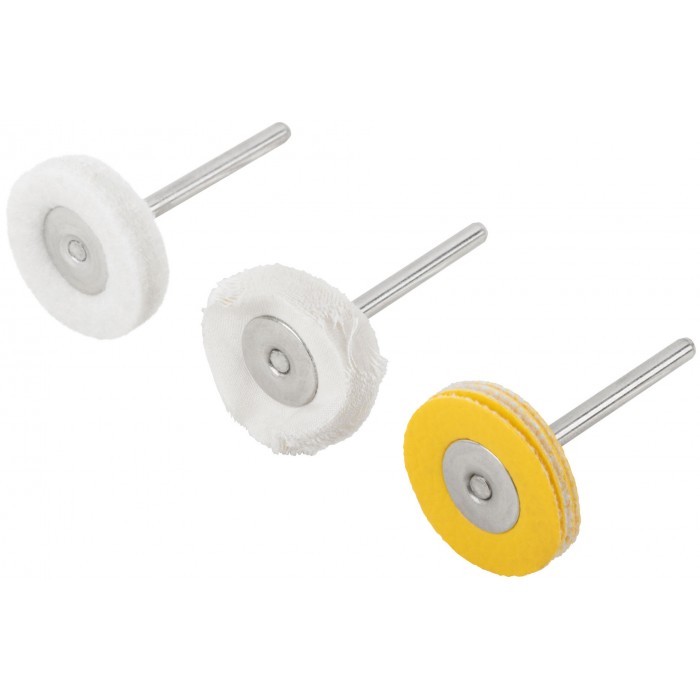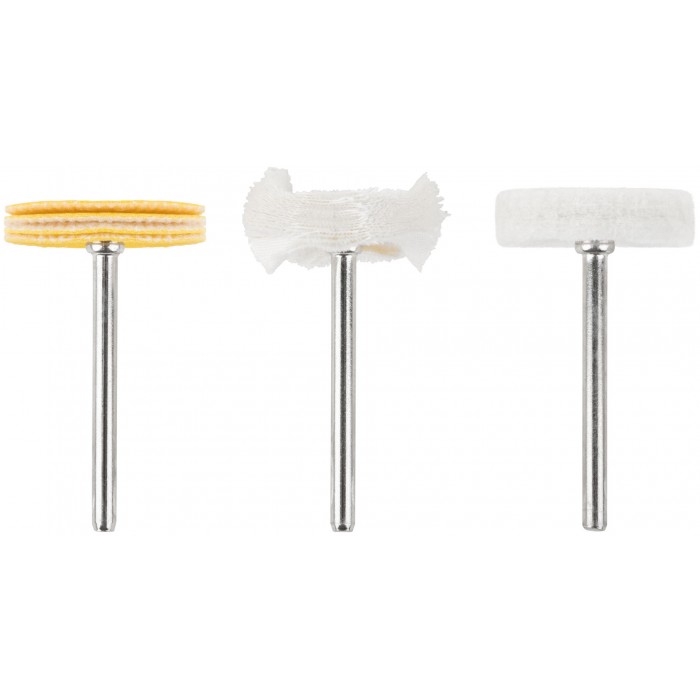Набор 3 шт. Для гравировальной машины. Предназначен для полирования. D хвостовика=3,1 мм. Материал: хлопок, шерсть, поролон, инструментальная сталь. Упаковка: блистер.