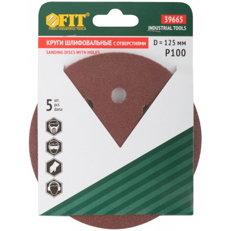 Круги шлифовальные с отверстиями (липучка), алюминий-оксидные, 125 мм, 5 шт. Р 100 (39665)