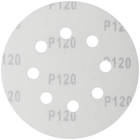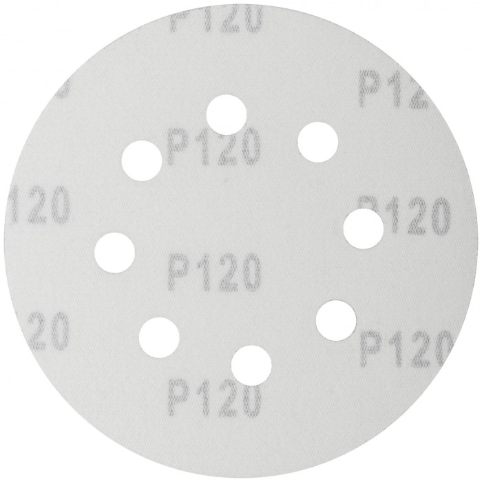 D=125 мм. Цена за набор 5 шт. На тканевой основе с липучкой, с 8 отверстиями. Для обработки плоских поверхностей. Для электрических эксцентриковых шлифмашин с пылеотводом. Материал: абразивный слой из оксида алюминия. Упаковка: картонный конверт.