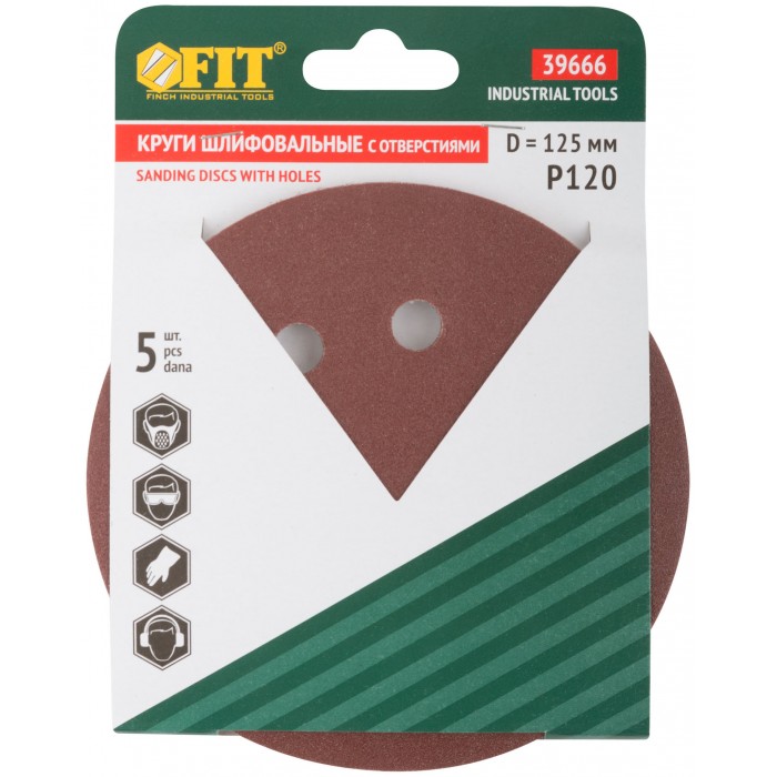 Круги шлифовальные с отверстиями (липучка), алюминий-оксидные, 125 мм, 5 шт. Р 120 (39666)