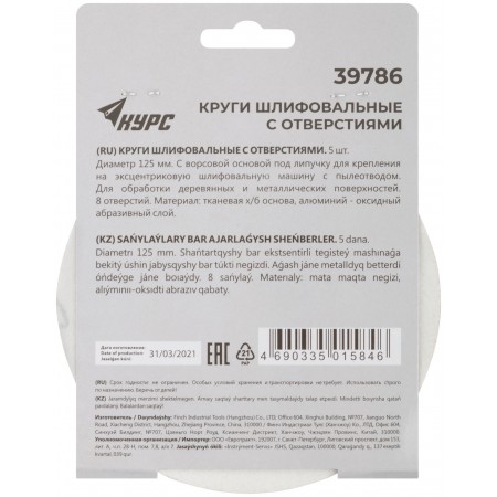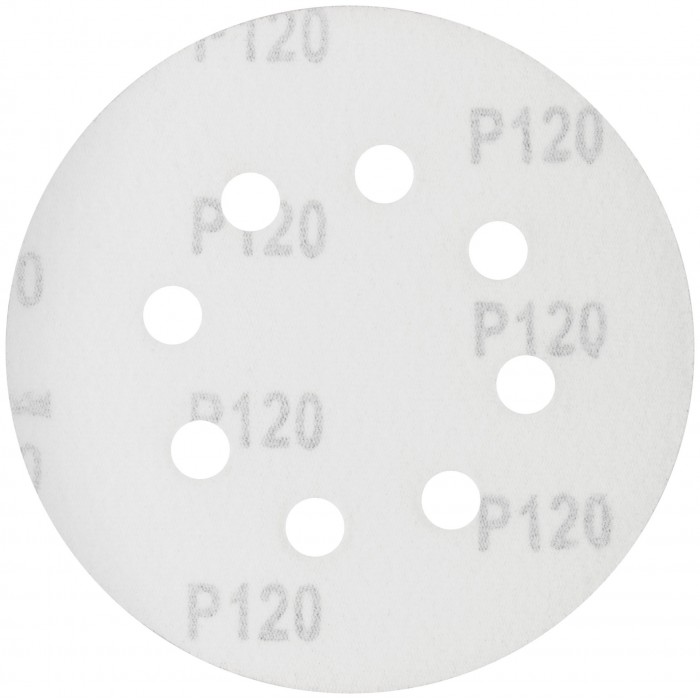 D=125 мм. Цена за набор 5 шт. На тканевой основе с липучкой, с 8 отверстиями. Для обработки плоских поверхностей. Для электрических эксцентриковых шлифмашин с пылеотводом. Материал: абразивный слой из оксида алюминия. Упаковка: картонный конверт.