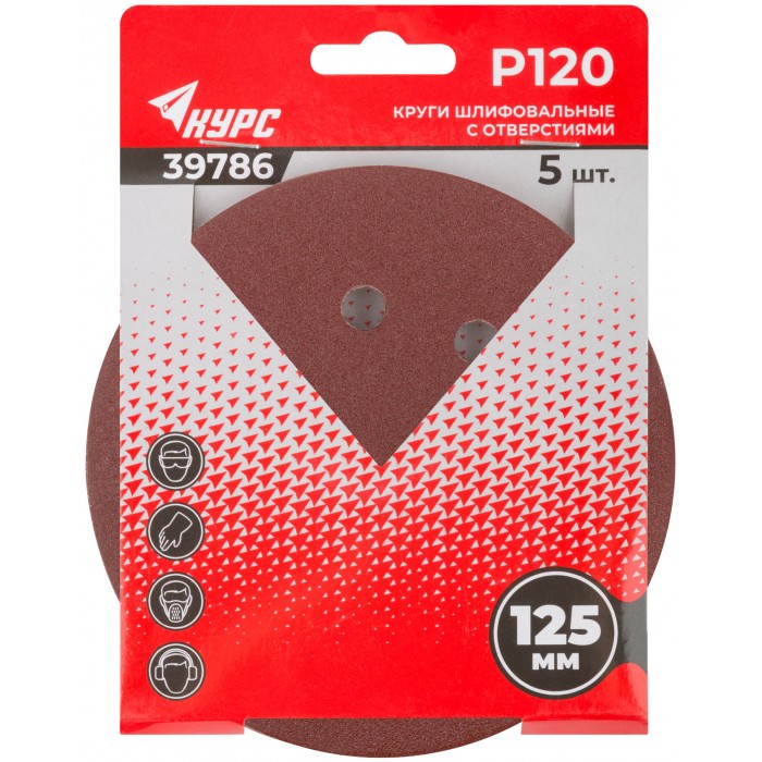 Круги шлифовальные с отверстиями (липучка), алюминий-оксидные, 125 мм, 5 шт. Р 120 (39786)