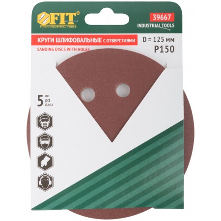Круги шлифовальные с отверстиями (липучка), алюминий-оксидные, 125 мм, 5 шт. Р 150 (39667)