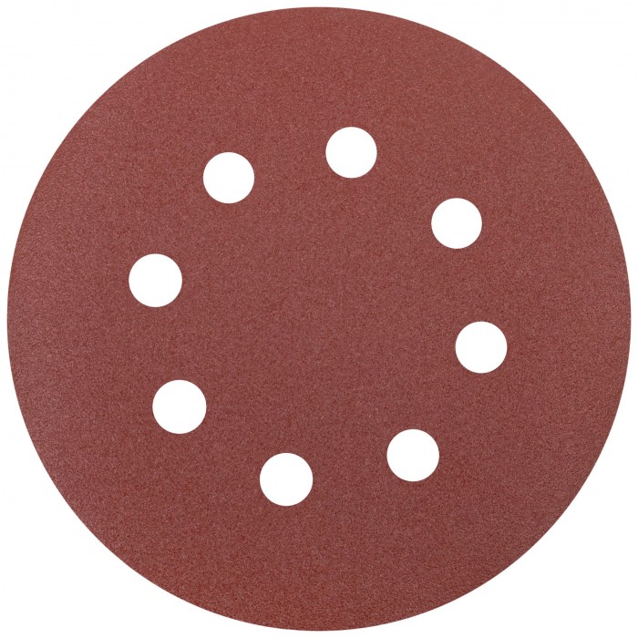 D=125 мм. Цена за набор 5 шт. На тканевой основе с липучкой, с 8 отверстиями. Для обработки плоских поверхностей. Для электрических эксцентриковых шлифмашин с пылеотводом. Материал: абразивный слой из оксида алюминия. Упаковка: картонный конверт.