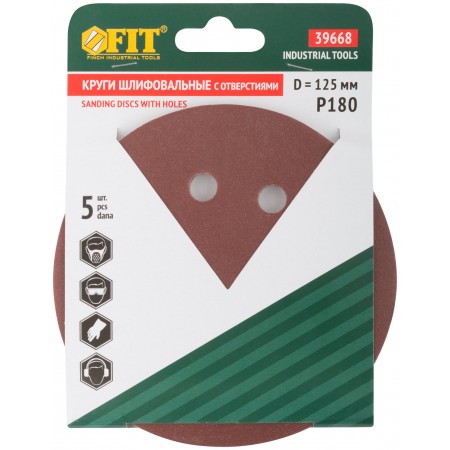 Круги шлифовальные с отверстиями (липучка), алюминий-оксидные, 125 мм, 5 шт. Р 180 (39668)