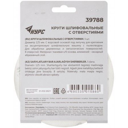 D=125 мм. Цена за набор 5 шт. На тканевой основе с липучкой, с 8 отверстиями. Для обработки плоских поверхностей. Для электрических эксцентриковых шлифмашин с пылеотводом. Материал: абразивный слой из оксида алюминия. Упаковка: картонный конверт.