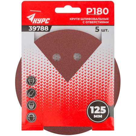Круги шлифовальные с отверстиями (липучка), алюминий-оксидные, 125 мм, 5 шт. Р 180 (39788)
