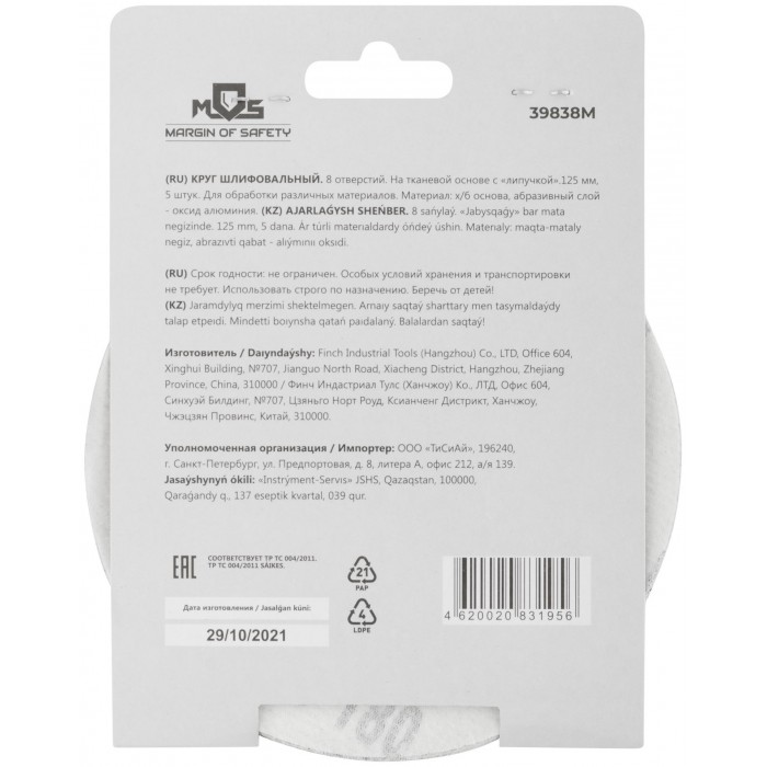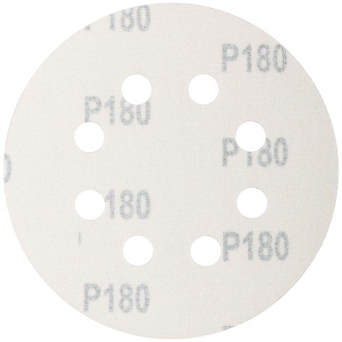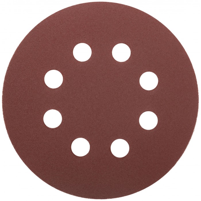 8 отверстий. На тканевой основе с «липучкой». Диаметр 125 мм, набор 5 шт. Для обработки различных материалов. Материал: х/б основа, абразивный слой - оксид алюминия.