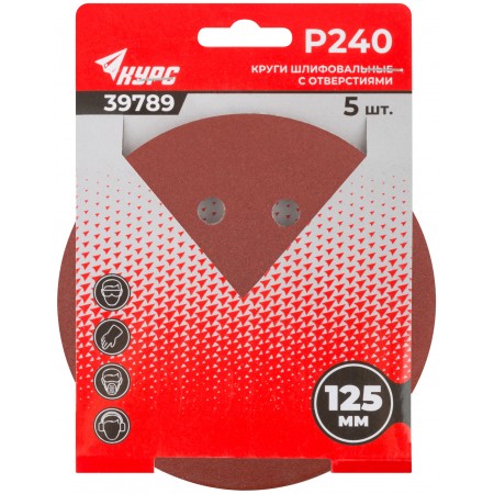 Круги шлифовальные с отверстиями (липучка), алюминий-оксидные, 125 мм, 5 шт. Р 240 (39789)