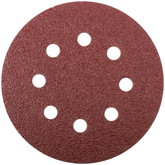 D=125 мм. Цена за набор 5 шт. На тканевой основе с липучкой, с 8 отверстиями. Для обработки плоских поверхностей. Для электрических эксцентриковых шлифмашин с пылеотводом. Материал: абразивный слой из оксида алюминия. Упаковка: картонный конверт.