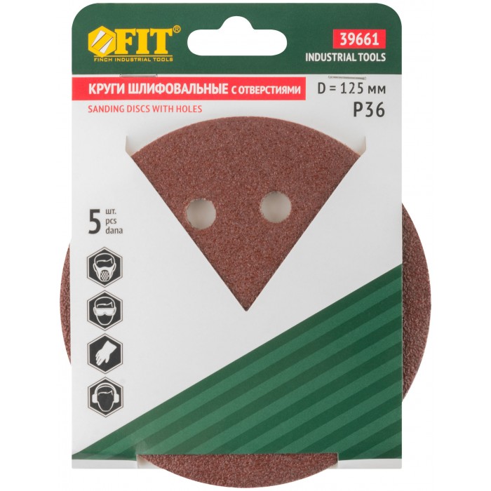Круги шлифовальные с отверстиями (липучка), алюминий-оксидные, 125 мм, 5 шт. Р 36 (39661)