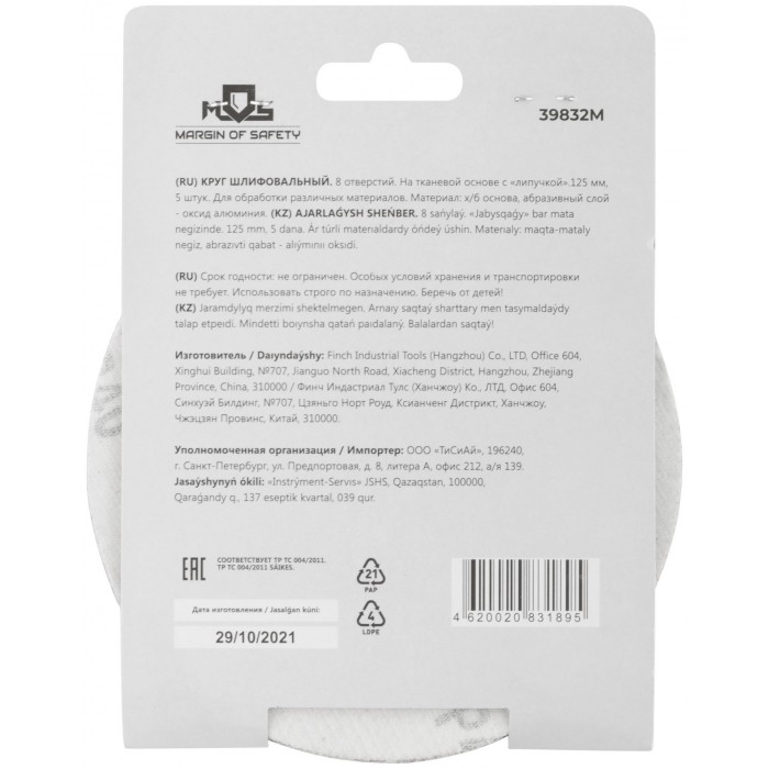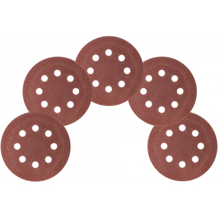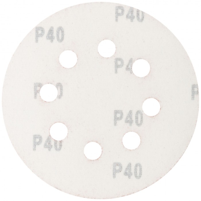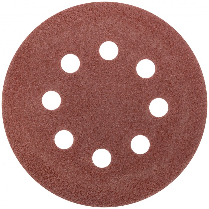 8 отверстий. На тканевой основе с «липучкой». Диаметр 125 мм, набор 5 шт. Для обработки различных материалов. Материал: х/б основа, абразивный слой - оксид алюминия.
