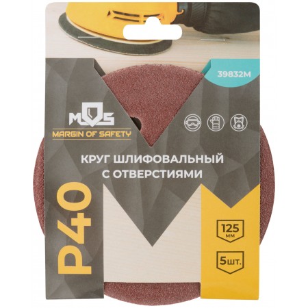 Круги шлифовальные с отверстиями (липучка), алюминий-оксидные, 125 мм, 5 шт. Р 40 (39832М)