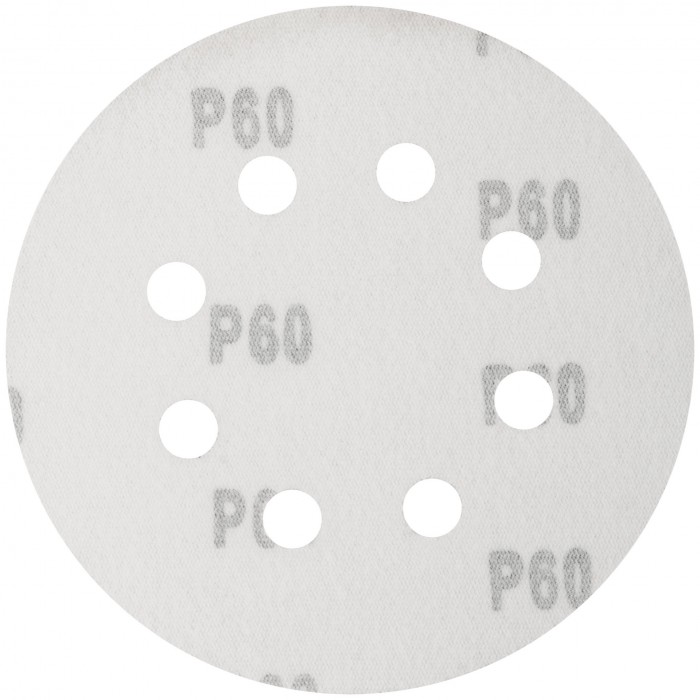 D=125 мм. Цена за набор 5 шт. На тканевой основе с липучкой, с 8 отверстиями. Для обработки плоских поверхностей. Для электрических эксцентриковых шлифмашин с пылеотводом. Материал: абразивный слой из оксида алюминия. Упаковка: картонный конверт.