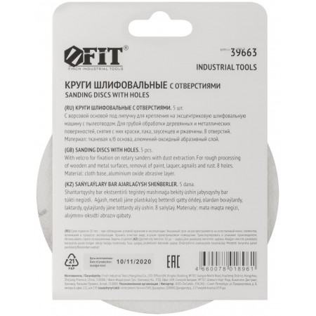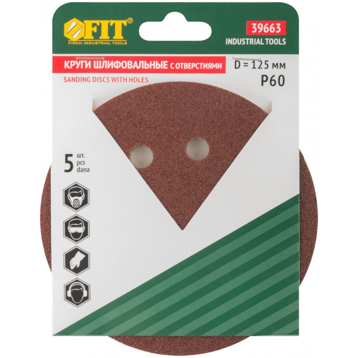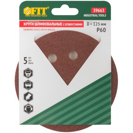 Круги шлифовальные с отверстиями (липучка), алюминий-оксидные, 125 мм, 5 шт. Р 60 (39663)