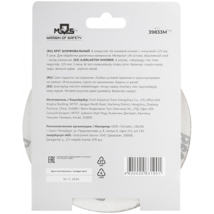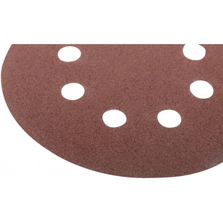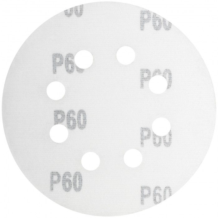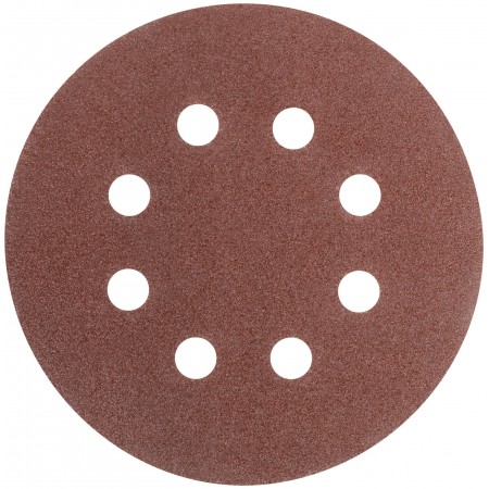 8 отверстий. На тканевой основе с «липучкой». Диаметр 125 мм, набор 5 шт. Для обработки различных материалов. Материал: х/б основа, абразивный слой - оксид алюминия.