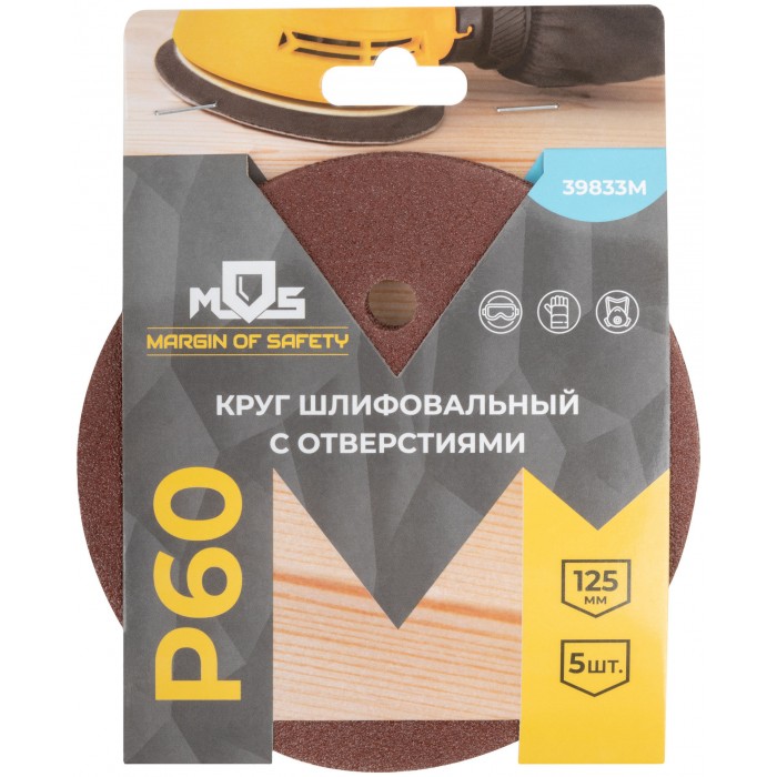 Круги шлифовальные с отверстиями (липучка), алюминий-оксидные, 125 мм, 5 шт. Р 60 (39833М)