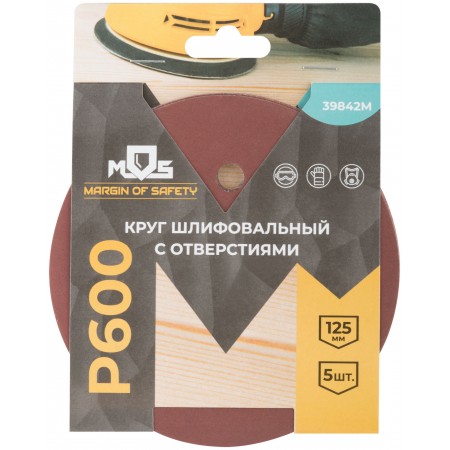Круги шлифовальные с отверстиями (липучка), алюминий-оксидные, 125 мм, 5 шт. Р 600 (39842М)