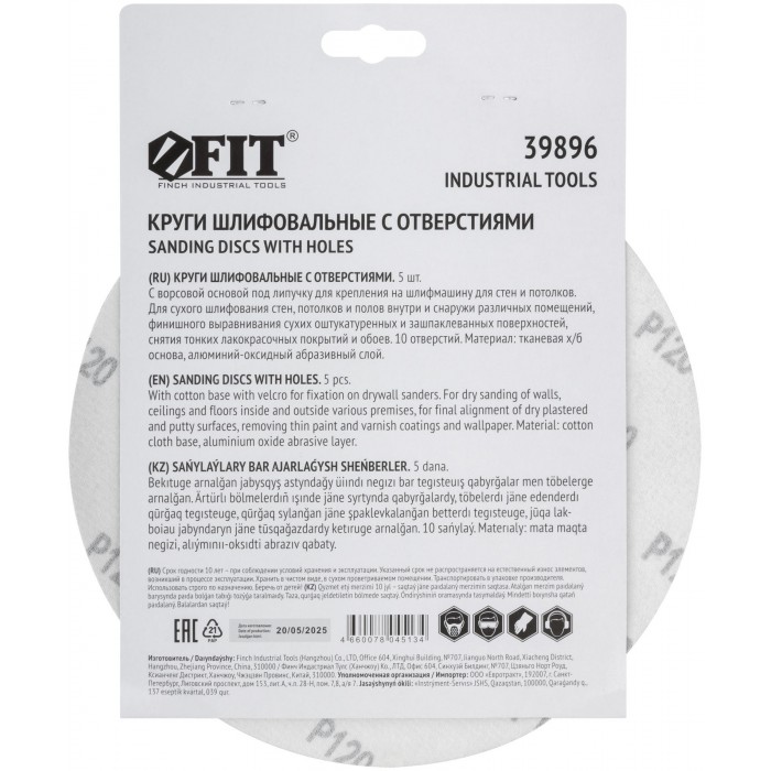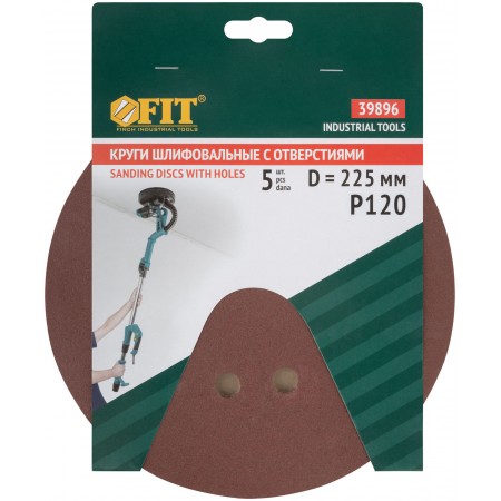 Круги шлифовальные с отверстиями (липучка), алюминий-оксидные, 225 мм, 5 шт. Р 120 (39896)