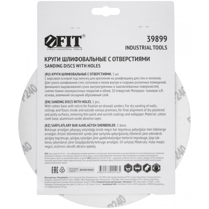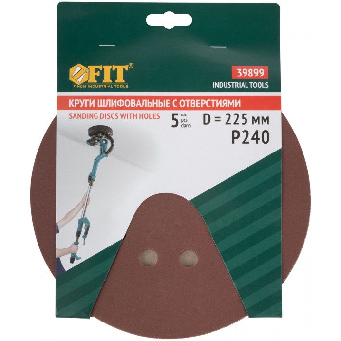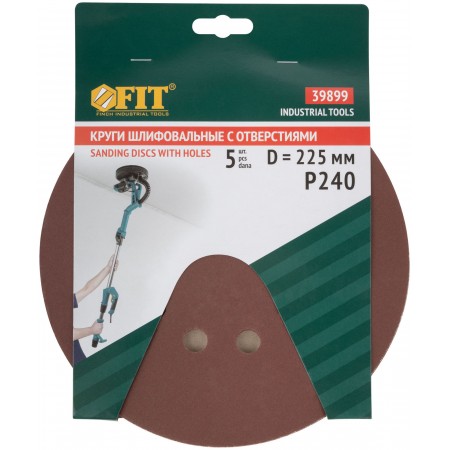 Круги шлифовальные с отверстиями (липучка), алюминий-оксидные, 225 мм, 5 шт. Р 240 (39899)