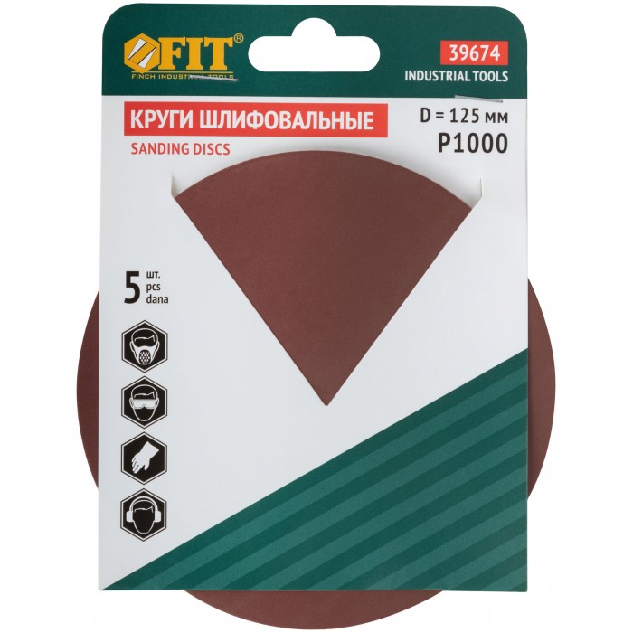 Круги шлифовальные сплошные (липучка), алюминий-оксидные, 125 мм, 5 шт. Р 1000 (39674)