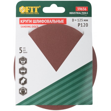 Круги шлифовальные сплошные (липучка), алюминий-оксидные, 125 мм, 5 шт. Р 120 (39656)