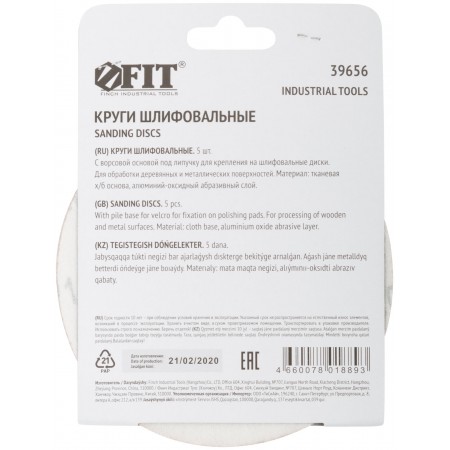 D=125 мм. Цена за набор 5 шт. На тканевой основе с липучкой. Для обработки плоских поверхностей. Материал: абразивный слой из оксида алюминия. Упаковка: картонный конверт.