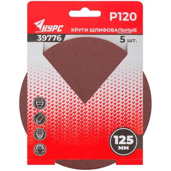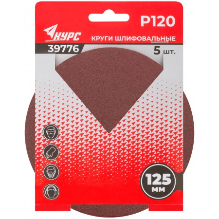 Круги шлифовальные сплошные (липучка), алюминий-оксидные, 125 мм, 5 шт. Р 120 (39776)