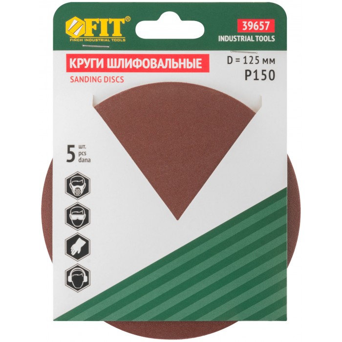 Круги шлифовальные сплошные (липучка), алюминий-оксидные, 125 мм, 5 шт. Р 150 (39657)