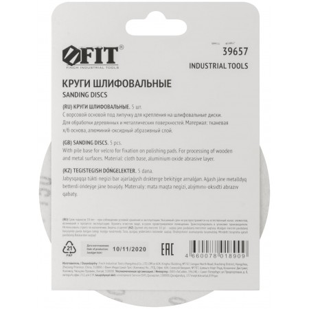 D=125 мм. Цена за набор 5 шт. На тканевой основе с липучкой. Для обработки плоских поверхностей. Материал: абразивный слой из оксида алюминия. Упаковка: картонный конверт.